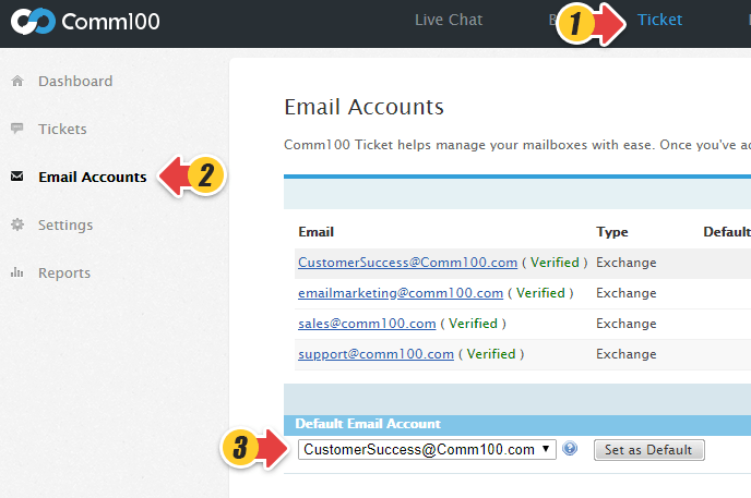 Change the default email account for ticket replying