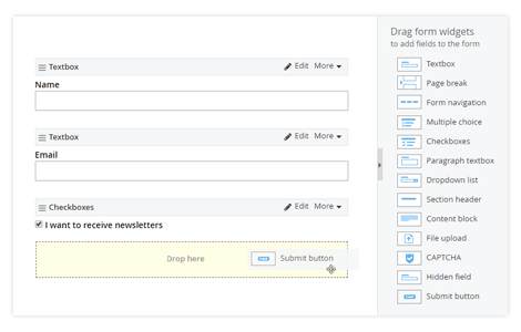 Drag And Drop Form Builder Open Source. Creating a form is very easy, you just have to drag elements from 'Drag & drop components' to 'Your form' area. GrapesJS is an open-source, multi-purpose, Web Builder Framework which combines different tools and features with the goal to help you (or users of your application) to build HTML templates without any knowledge of coding.