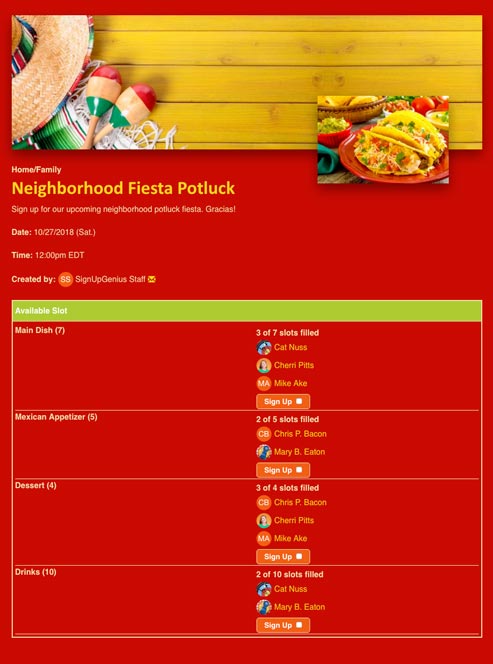 Family Event Organizing: Free Online Sign Up Sheets