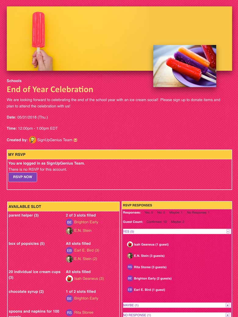 Online Sign Up Sheet For Potluck