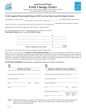 Fillable Online Auto Proceed Project Field Change Order ...